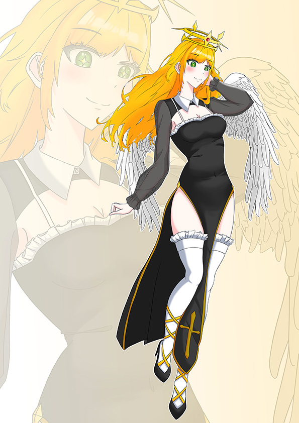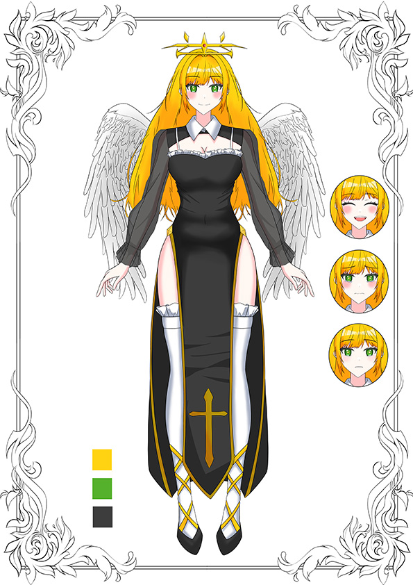 수녀복을 입은 천사 컨셉의 캐릭터 디자인 및 일러스트입니다.