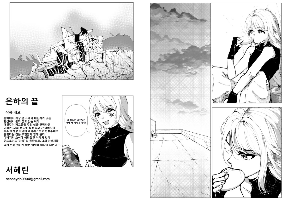 은하에서 가장 큰 쓰레기 매립지가 있는 행성에서 혼자 살고 있는 이라. 매일같이 폐고물을 주워 삶을 연명하던 이라는, 오래 전 자신을 버리고 간 아버지가 우주 역사상 최악의 테러리스트로 현상수배로 올랐다는 것을 우연찮게 알게 된다. 아버지의 소식에 심란했던 이라의 앞에 안드로이드 ‘아리’ 의 등장으로, 그의 아버지를 막기 위해 원하지 않는 여행을 떠나게 되는데…
