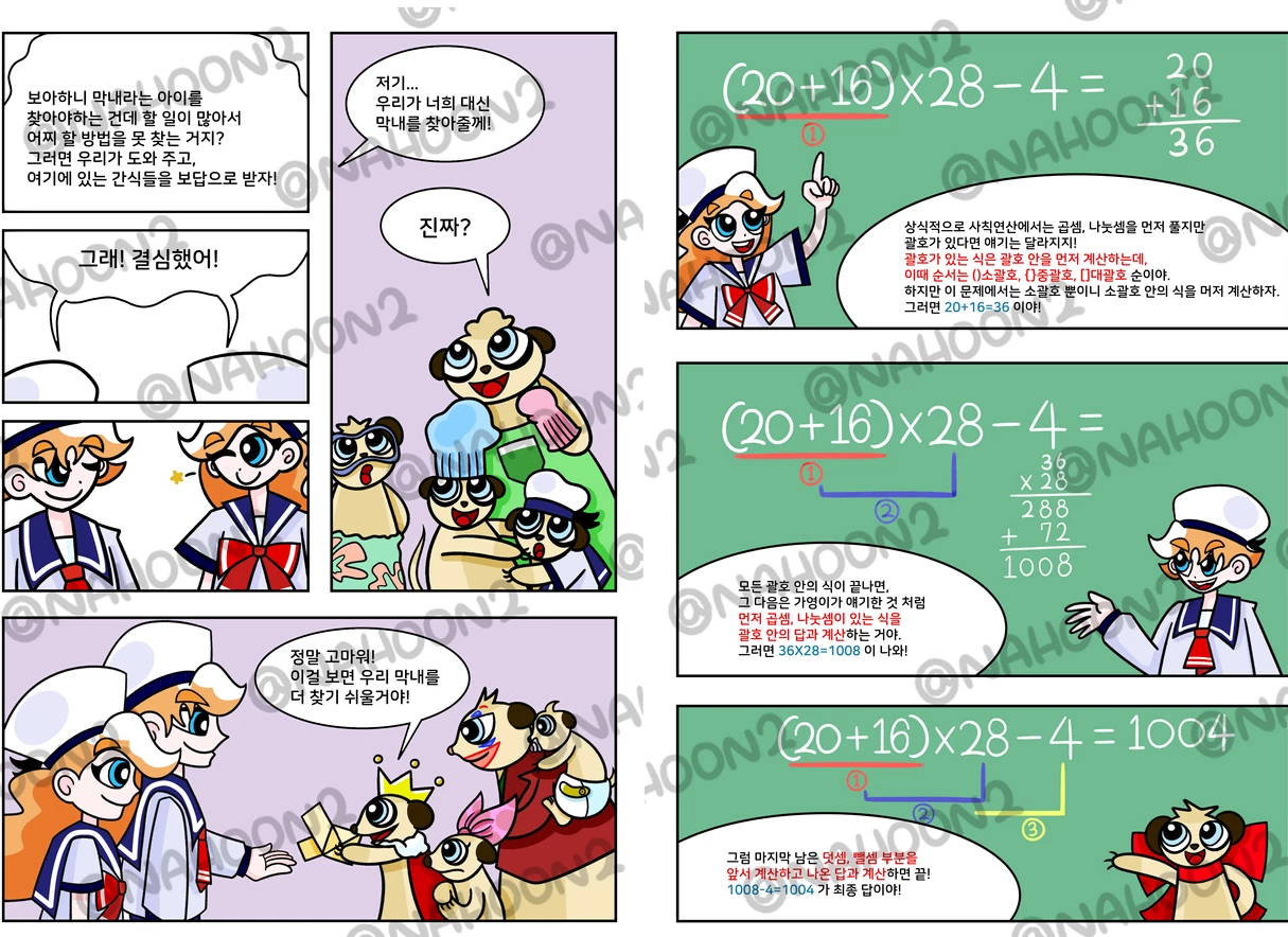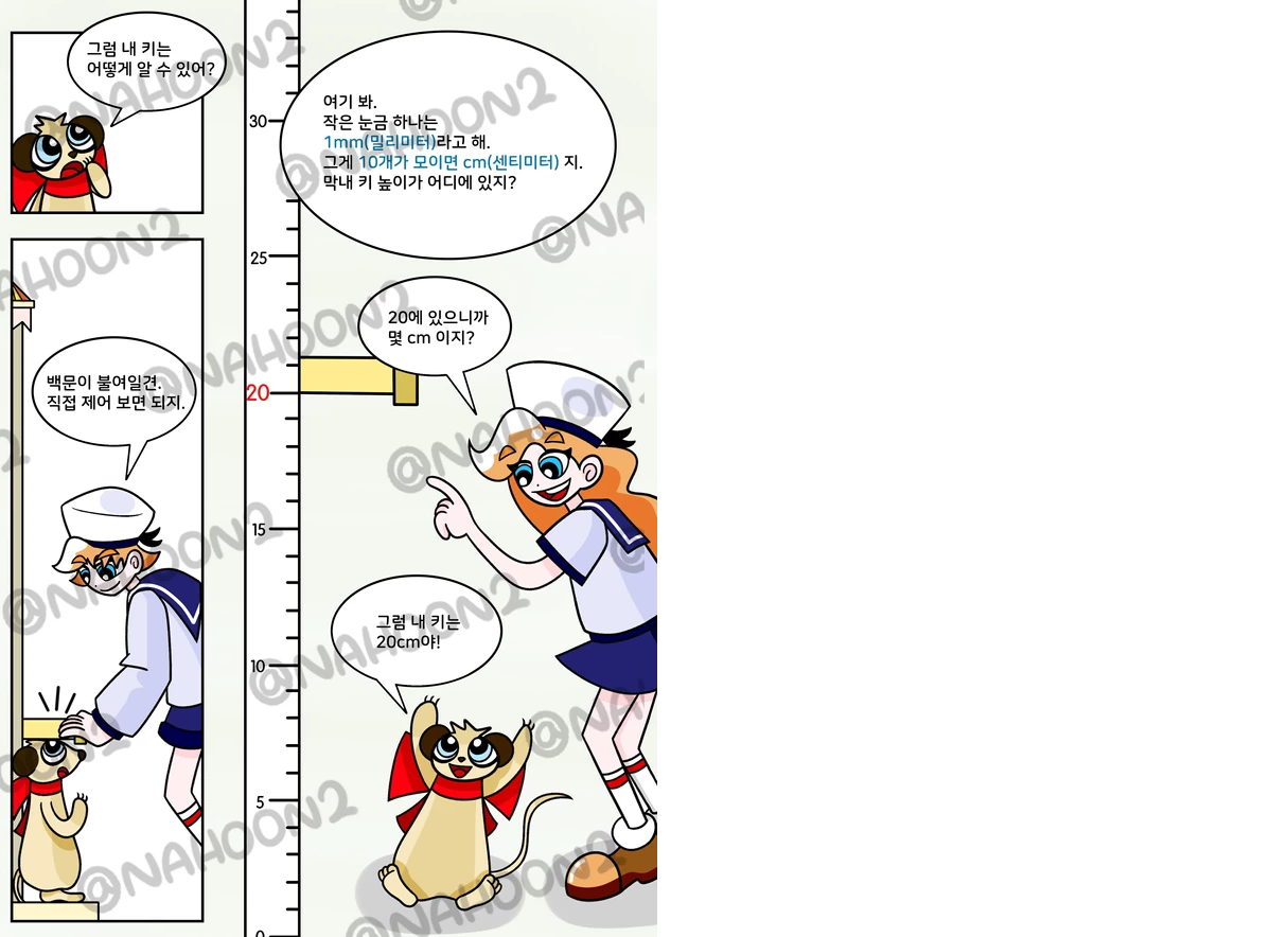 훈이와 가영이와 막내 미어캣과 함께 펼치는 신나는 동물원 속 수학 모험!